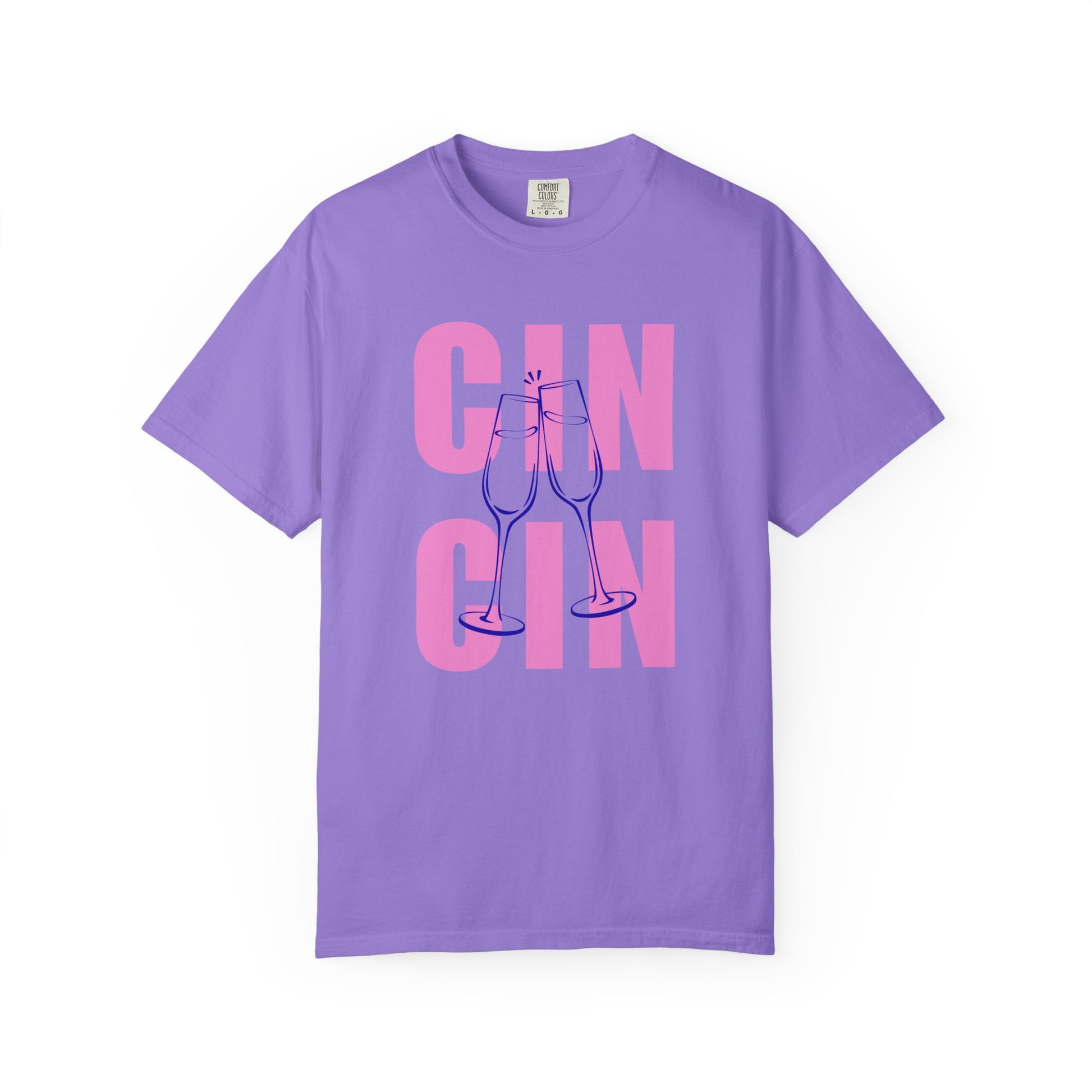 A fun shirt featuring champagne glasses and cheers that can be styled in many ways. Perfect for those looking for a versatile and comfortable garment that adds a touch of celebration to their outfit. Ideal for adults who enjoy casual gatherings, parties, and special occasions like birthdays, New Year's Eve, and anniversaries.